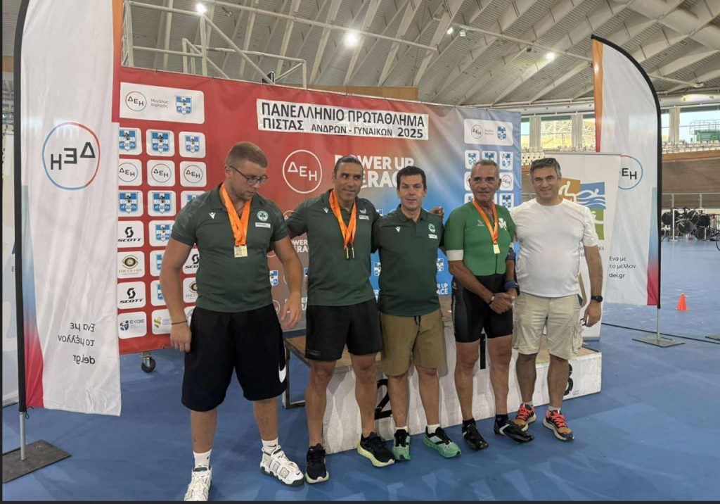 Τίτλος 1.815 και συνεχίζει ο πολυαθλητικός σύλλογος του Παναθηναϊκού......Αυτή τη φορά ήρθε από το τμήμα ποδηλασίας ΑμεΑ όπου οι αθλητές του προπονητή Κώστα Γκρέκα και του τιμ μάνατζερ Στεφάν Σεδεφιάν ανέβηκαν στο ψηλότερο σκαλί του βάθρου στο αγώνισμα της πίστας για τρίτη φορά μετά το 2021 και το 2024 στο Πανελλήνιο Πρωτάθλημα που διεξήχθη στο Ποδηλατοδρόμιο του ΟΑΚΑ. Αξιοσημείωτο είναι το γεγονός πως οι Χρήστος Σανδαλάκης και Κώστας Τρουλινός ήρθαν αυθημερόν από το Ηράκλειο συμβάλλοντας τα μέγιστα στην κατάκτηση μεταλλίων ενώ καθοριστική ήταν και η παρουσία του αειθαλή Λουκά Ανέστη. Αναλυτικά όσα έκαναν: