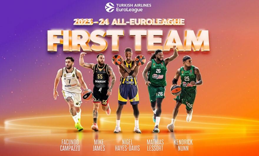 Δύο παίκτες του Παναθηναϊκού, αλλά κανένας του Ολυμπιακού, επελέγησαν στην καλύτερη πεντάδα της σεζόν στην Ευρωλίγκα.
