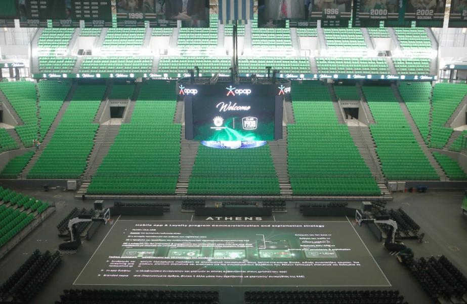 Η ΚΑΕ Παναθηναϊκός παρουσίασε σε ειδική εκδήλωση για τους χορηγούς της τις δυνατότητες του νέου εντυπωσιακού γυάλινου παρκέ στο ΟΑΚΑ.