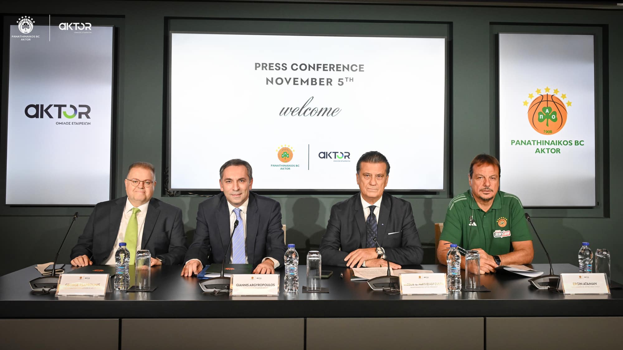 «Σας καλωσορίζω θερμά στη σημερινή Συνέντευξη Τύπου, μια στιγμή χαράς για όλους εμάς στην οικογένεια του Παναθηναϊκού και τους φίλους του συλλόγου. Σήμερα, είμαστε εδώ για να επισφραγίσουμε τη συνέχιση μιας σπουδαίας συνεργασίας με τον Όμιλο Intrakat, μια συνεργασία που έχει αποδείξει την αξία της και έχει ήδη θέσει τις βάσεις για νέες επιτυχίες.
