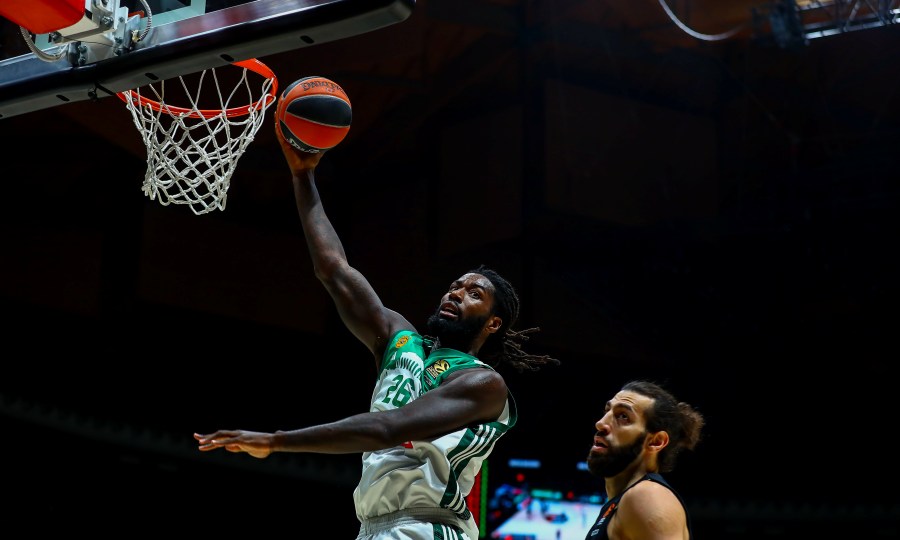 Στη δεύτερη περίοδο, ο Κορντινιέ έβαλε ένα ωραίο καλάθι και έβγαλε μία άμυνα (20-19) για τη Βίρτους. Στην επόμενη επίθεση δημιούργησε έξυπνα για τον Ζίζιτς (22-19), με τον Παναθηναϊκό να βγάζει μία καταπληκτική επίθεση που ολοκληρώθηκε με τρίποντο του Παπαπέτρου για την ισοφάριση σε 22-22. Ο Μπελινέλι πήγε στη γραμμή και έβαλε δύο βολές (24-22), με τον Γιουρτσεβέν να καρφώνει μετά από συνεργασία με τον Σλούκα για το 24-24. Ο Πολονάρα έκανε ένα φοβερό φόλοου κάρφωμα (26-24), με τον Ναν να βάζει τρίποντο και τον Μπελινέλι λέι απ για το 28-27. Ο Σλούκας σκόραρε με τρίποντο, όπως έκανε και ο Ναν, γράφοντας το 30-33. Ο Γκραντ πήρε τη… σκυτάλη από μακριά για το 32-36, ενώ ο Γιουρτσεβέν έκανε τάπα και λέι απ στην άλλη πλευρά για το 32-38. Ο Ναν συνέχισε να σκοράρει διαρκώς και έγραψε το 32-40 με φλόουτερ, με τον Κορντινιέ να δίνει λύση στους γηπεδούχους με τρίποντο (35-40). Ο Γιουρτσεβέν απάντησε και ο Παγιόλα ακολούθησε (38-43), με τον Σλούκα να «πυροβολεί» από τα 6,75μ. επίσης για το 38-46. Ο Παναθηναϊκός τα έκανε… θάλασσα στο τέλος του ημιχρόνου, αφού δέχθηκε δύο βολές από τον Κλάιμπερν, δεν εξασφάλισε το ριμπάουντ στη χαμένη τρίτη, και αυτό οδήγησε σε τρίποντο του ίδιου για το 43-46.