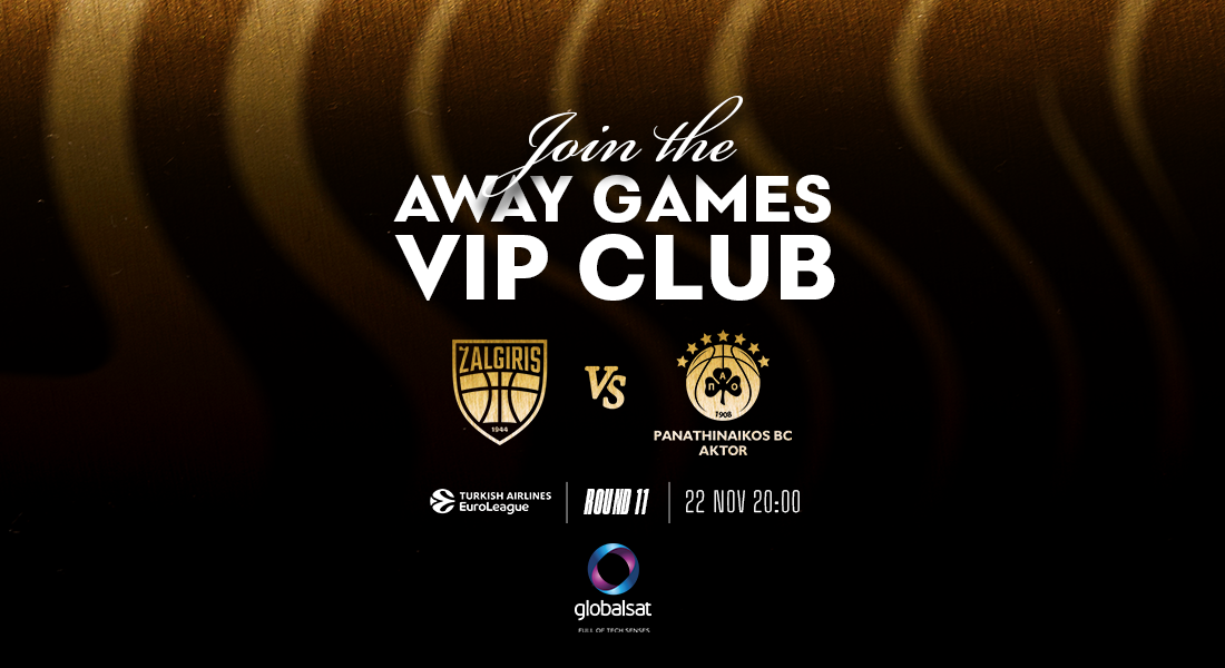 Παρακολουθήστε την αναμέτρηση κόντρα στη Zalgiris, μαζί με τους αθλητές και τα μέλη του προπονητικού επιτελείου που δε θα έχουν ακολουθήσει την αποστολή και ζήστε και εσείς τη μοναδική εμπειρία του να είστε μέλη στο Away Games VIP Club.