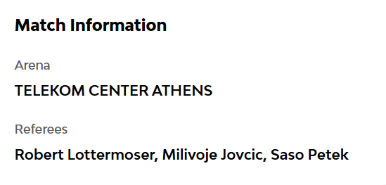 Το παιχνίδι θα σφυρίξουν οι Ρόμπερτ Λοτερμόζερ από τη Γερμανία, Μιλιβόγιε Γιόβτσιτς από τη Σερβία και Σάσο Πέτεκ από τη Σλοβενία.