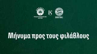 Η ΚΑΕ καλεί τους φιλάθλους να προσέλθουν έγκαιρα και να δείξουν σωστή συμπεριφορά ενόψει της πρεμιέρας της Euroleague με την Μπάγερν Μονάχου.