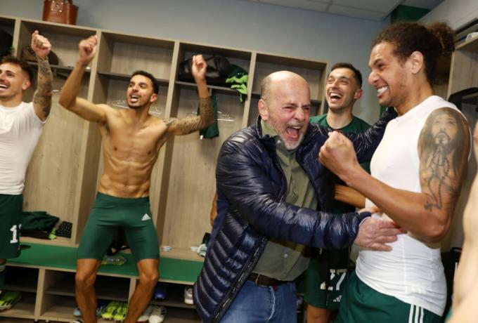 Ο ισχυρός άνδρας των Πρασίνων ήταν... τρελαμένος στο φινάλε του ματς κι αφού έξτρεξε να αγκαλιάσει τον Φατίχ Τερίμ αμέσως μετά τις δηλώσεις του στο flash interview, έκανε το ίδιο και στα αποδυτήρια της Λεωφόρου, όντας εμφανώς συγκινημένος.
