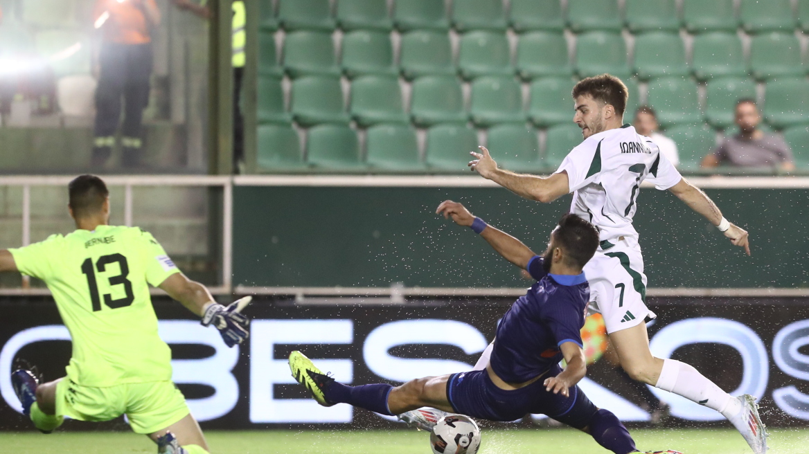 Παίζοντας σε ένα γνώριμο για τους πράσινους γήπεδο, τη φυσική τους έδρα και με τον κόσμο στο πλευρό τους, προσπάθησαν από τα πρώτα λεπτά της αναμέτρησης να έχουν την πρωτοβουλία των κινήσεων απειλώντας μάλιστα στην πρώτη φάση της αναμέτρησης μόλις στο 5ο λεπτό με κεφαλιά του Σένκεφελντ μετά από σέντρα του Μαντσίνι από δεξιά που πέρασε άουτ, ωστόσο η Καλλιθέα αντέδρασε άμεσα και άρχισε να επισκέπτεται συχνά-πυκνά την περιοχή του Ντραγκόφσκι αρχής γενομένης από το 8' με σουτ από πλάγια θέση αριστερά του Ντεμέτριους που ανάγκασε τον Ντραγκόφσκι να διώξει σε κόρνερ, στο 13' με κεφαλιά του Ουλντρίκις που πέρασε ελάχιστα άουτ και ένα λεπτό μετά την ίδια κατάληξη είχε και σουτ του Μουτίνιο από το ύψος της μεγάλης περιοχής.