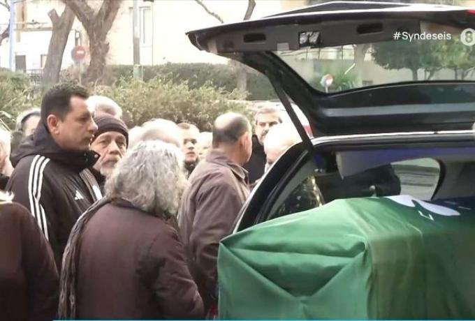 Εκεί βρισκόταν και η κόρη του η οποία άφησε δύο λουλούδια πάνω στο φέρετρο το οποίο ήταν τυλιγμένο με τη σημαία του Παναθηναϊκού.