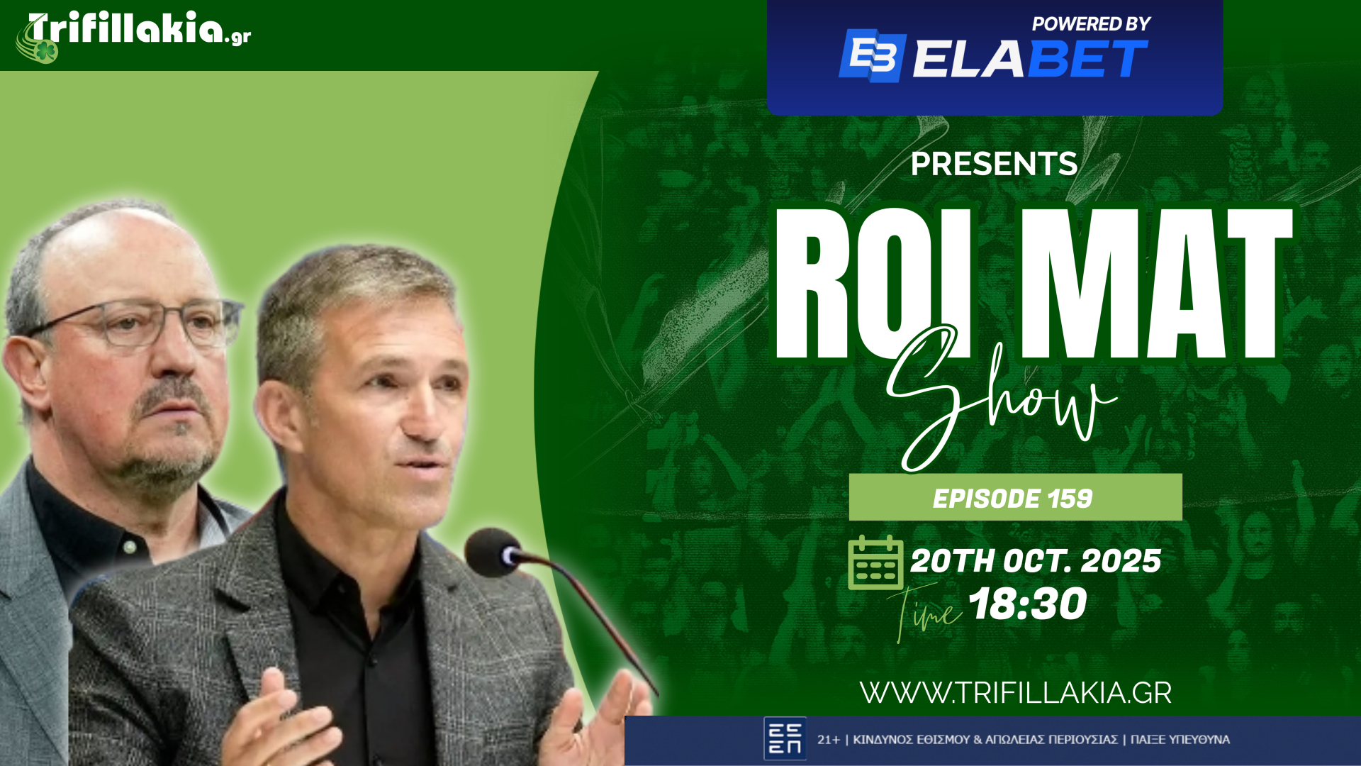 Ο ΜΑΤ σας περιμένει σε ένα ακόμη ROI MAT SHOW για να συζητήσουμε για τις τελευταίες καυτές εξελίξεις στον ποδοσφαιρικό Παναθηναϊκό με Μπενίτεθ, Μπαλντίνι, διοικητικές σαρωτικές αλλάγές. Παράλληλα αναλύουμε το 1-1 του Παναθηναϊκού κόντρα στον Άρη και τις ευθύνες Κόντη και παικτών.