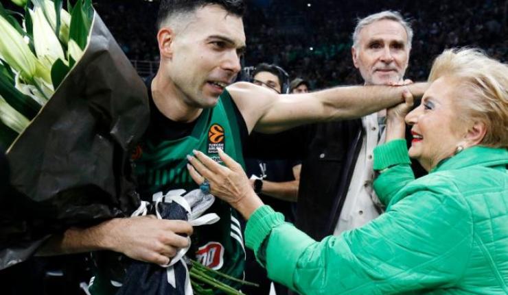 Η Δέσποινα Γιαννακοπούλου προσέφερε μια ανθοδέσμη στον Κώστα Σλούκα, μετά την πρόκριση του Παναθηναϊκού στο Final Four της Euroleague.