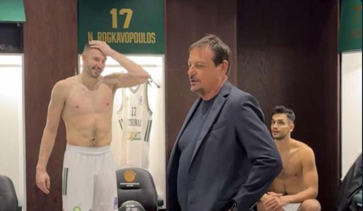 Ο Νίκος Ρογκαβόπουλος όχι μόνο έκλεψε την παράσταση με την εξωπραγματική εμφάνιση των 40 πόντων και τα 12/19 τρίποντα, αλλά έγινε και… στόχος για το παραδοσιακό μπουγέλο αποθέωσης από τους συμπαίκτες του, που τον «έπνιξαν» στα νερά στα αποδυτήρια.
