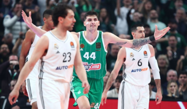 Ο Παναθηναϊκός ανάγκασε και την Ρεάλ Μαδρίτης να υποκλιθεί στο μεγαλείο του επικρατώντας με 85-70 στο πλαίσιο της 28ης αγωνιστικής της κορυφαίας διασυλλογικής διοργάνωσης με μια φοβερή απόδοση στο δεύτερο μέρος. Οι Μαδριλένοι έχοντας κάποιες απουσίες έδειξαν ανταγωνιστικοί μέχρι το 36ο λεπτό με το σκορ στο 72-64 αλλά στη συνέχεια δεν μπορούσαν να ακολουθήσουν τον δαιμονιώδη ρυθμό των αντιπάλων τους τελειώνοντας το ματς με το απογοητευτικό 3/26 τρίποντα. Κορυφαίοι των νικητών ήταν ο Κέντρικ Ναν με 18 πόντους με τον Μήτογλου να ακολουθεί με 15 ενώ από την ισπανική ομάδα προσπάθησαν οι Χεζόνια και Ταβάρες με 18 και 16 πόντους αντίστοιχα.