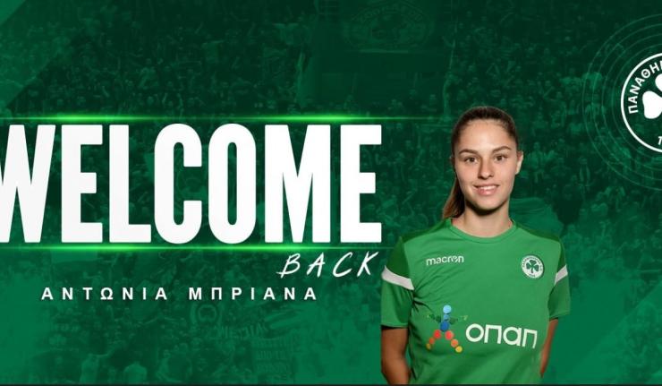Επέστρεψε σε γνώριμα λημέρια η Αντωνία Μπριάνα η οποία υπέγραψε συμβόλαιο μονοετούς διάρκειας με το τριφύλλι. Η 20χρονη μεσοεπιθετική αναμένεται να δώσει ποιότητα στην ομάδα του Ντράγκαν Κνέζεβιτς. Αναλυτικά η ανακοίνωση αναφέρει: