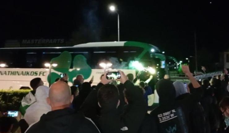 Οπαδοί του Παναθηναϊκού υποδέχθηκαν την αποστολή της ομάδας στο Αγρίνιο, ενόψει της αυριανής αναμέτρησης με τον Παναιτωλικό.